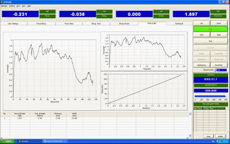 Adopted photoelectric encoder to measure the displacement, the controller uses the embedded single-chip microcomputer structure with multi-function software, which combined with measurement, control, calculation and storage. It can automatically calculate the stress, rate of elongation (need to add with extensometers), tensile strength, elastic modulus, automated statistical results; automatically records the biggest point, breaking point, the designated point value or the rate of elongation; Using computer to display the dynamic curves in the testing process and process the data, After testing, it can re-analysis and editing the data by amplifying the curves through the graphics processing module, printing reports, product performance reached the international advanced level.