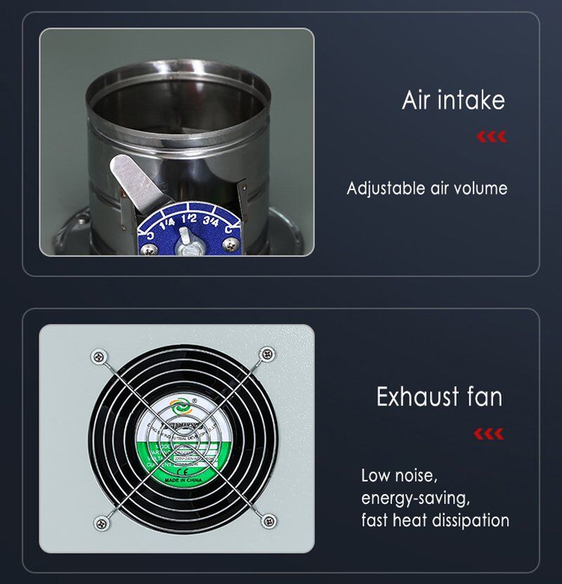 4. The exhaust volume adopts a manually adjustable air duct located at the top of the machine (The exhaust needs to be discharged outdoors);