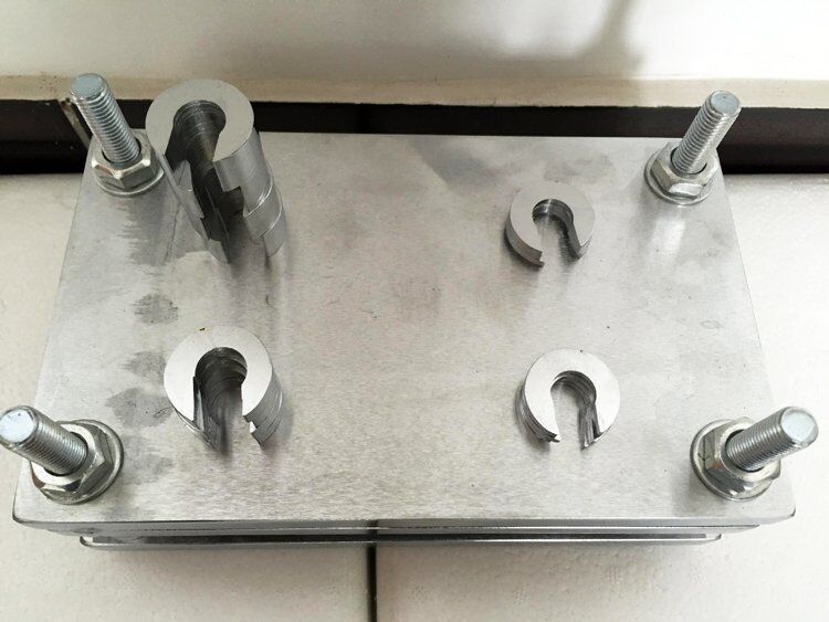2.1 Compression assembly, consisting of compression plates, steel spacers, and clamping device.