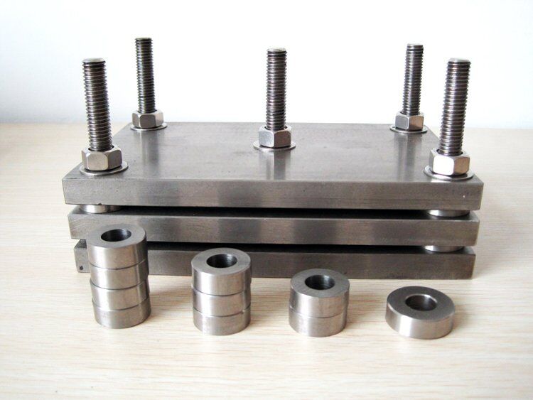 2.2 Compression plates, consisting of two parallel, flat, highly polished plates made of chromium-plated steel or stainless-steel or any corrosion-resistant material between the faces of which the testpiece is compressed.