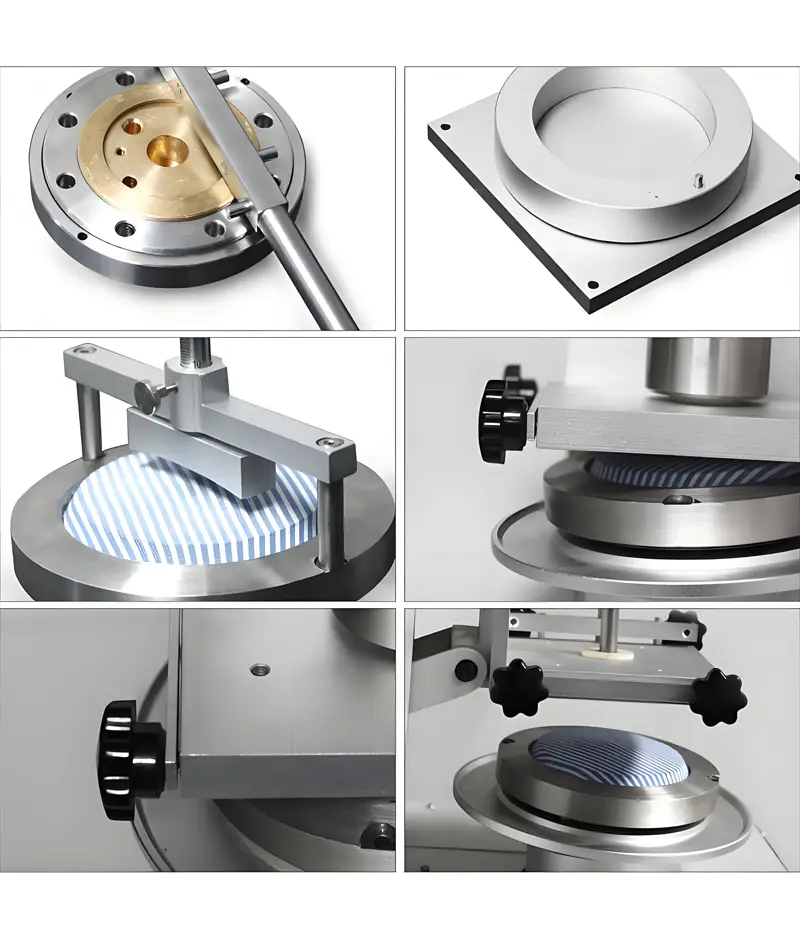 For testing the abrasion resistance of textile fabrics (woven, knitted, etc.). The working principle is that a friction body exerts a scouring effect in the tangential direction on the rotating specimen. The circular scuffing test can be used as a scuffing test, as a scuffing test to assess the change in fabric appearance or as a through scuffing test. It is recommended to refer to the standard sheets for details.