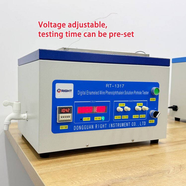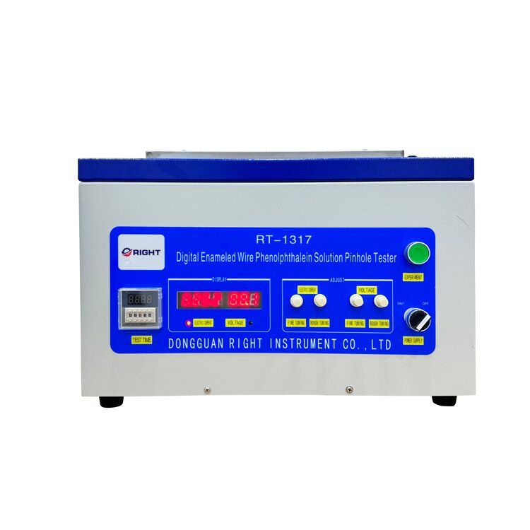 RT-1317 Salt Water Pinhole Tester is used to detect pinholes on the film of enameled wires; it is mainly designed to indicate the position of a pinhole by the color of the phenolphthalein indicator and visually inspect the number of pinholes. It is an economical and indispensable pinhole detection tool featuring simple operation and stable, intuitive, and reliable data detection.