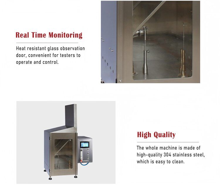 Used to ignite fabrics in a 45 ° direction, measure their ignition time, smoldering time, damage length, damage area, or determine the number of times the fabric needs to come into contact with flames to burn to a specified length.