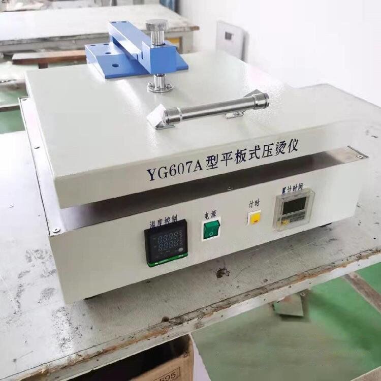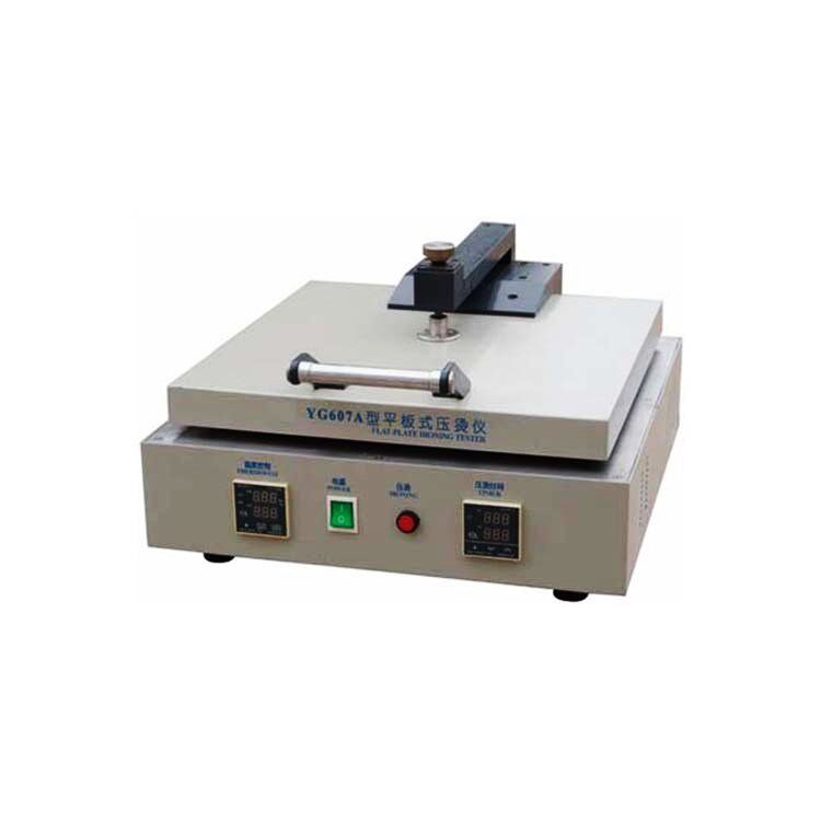 Hot Flat Ironing Tester. A simple heated and thermostatically controlled ironing press for use in testing stability and durability to hot pressing. This product is applicable to determinate change in fabrics exposed to dry heat.