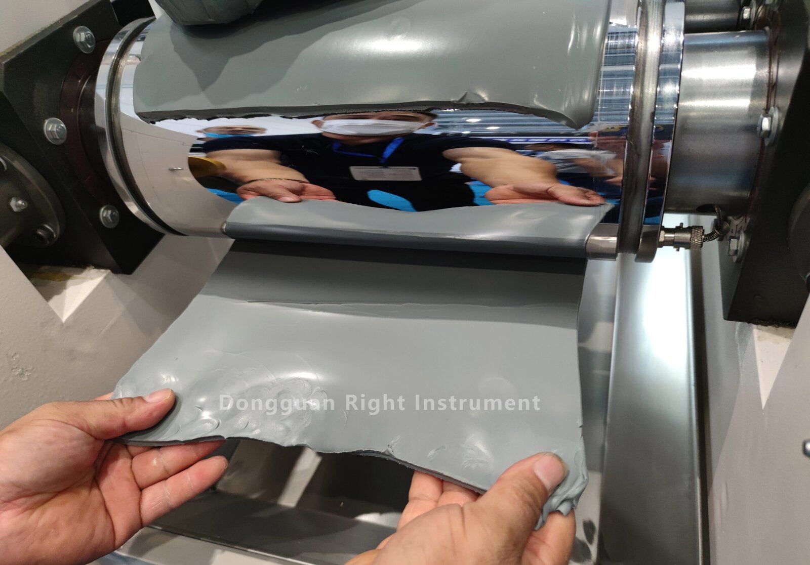 Two roll mill is widely used in rubber, plastics industries. Such as polyolefin, PVC, film, coil, profile production and polymer blending, pigments, masterbatch, stabilizers, stabilizers and so on. The main purpose is to test raw materials’s physical properties change and contrast after mixing. Such as color dispersion, light transmission, substance table.