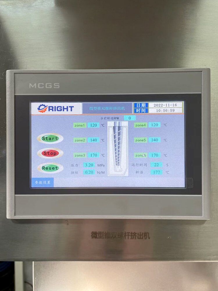Micro-Design: The micro-compounder is designed to handle small batch volumes, with a capacity of up to 15ml. This makes it ideal for research and experimental setups that require precise control over limited sample sizes.