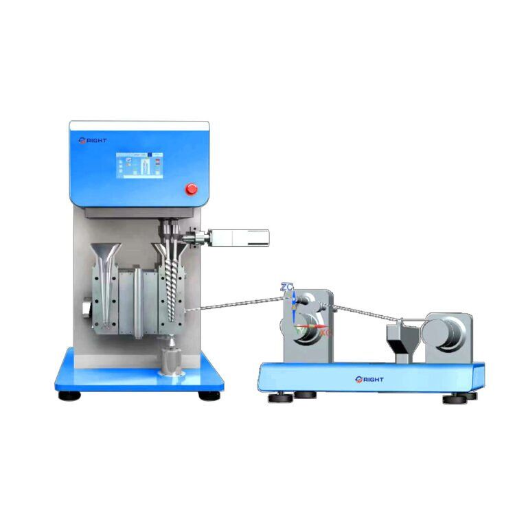 The micro melt spinning machine consists of RT-739 and RT-742 models. Among them, RT-739 is a front-end micro conical twin-screw extruder, mainly used for melting, co-mingling and extrusion of raw materials; RT-742 is a melt spinning machine, which consists of two parts, namely, a silk thread winding device and a silk thread secondary stretching and spinning device. The hardness of the barrel of the melt spinning machine is 64HRC (Rockwell Hardness), and the hardness of the screw is 54HRC (Rockwell Hardness), which is the highest in the industry. The melt spinner can withstand acid and alkali values of PH 0~14 (full range coverage), strong acid and alkali corrosion resistance and super hardness can be late to meet the needs of a variety of polymer research and development; for example, strong acid and alkaline materials, ultra-high viscosity engineering materials, and even can be used for the need to add ceramics or metal powders modified polymer materials. The unique rheological software can be used to monitor the screw torque, shear viscosity, shear rate and shear stress in real time, which can be used to assist in the scaling up of production equipment.