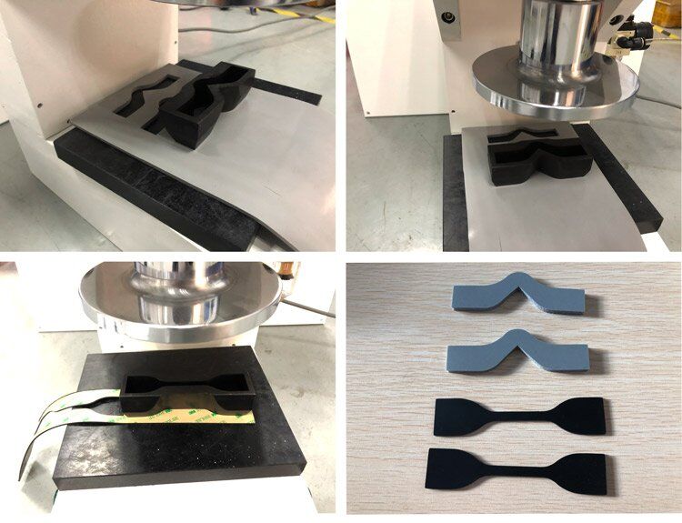 It uses pneumatic cut all kinds of specimens for laboratory cut rubber, plastics, leather. Test with dumbbell specimens, and other special materials, can also act as small presses.