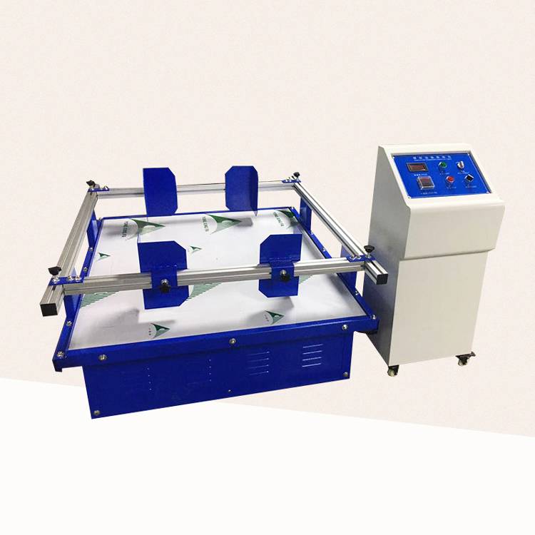 this machine is based on the United States and European transport standards and concerning the United States of similar equipment to improve manufacturing. The use of eccentric bearings in rotating elliptical trajectories is generated to simulate a car or ship’s goods during transport and the vibration of the collision. The test platform will be fixed on the eccentric bearing; when the eccentric bearing rotation, the test platform for the entire plane will produce an oval-shaped upper and lower front and rear movement, adjusting the eccentric shaft with the rotation speed equivalent to the speed of motor vehicles or vessels.
