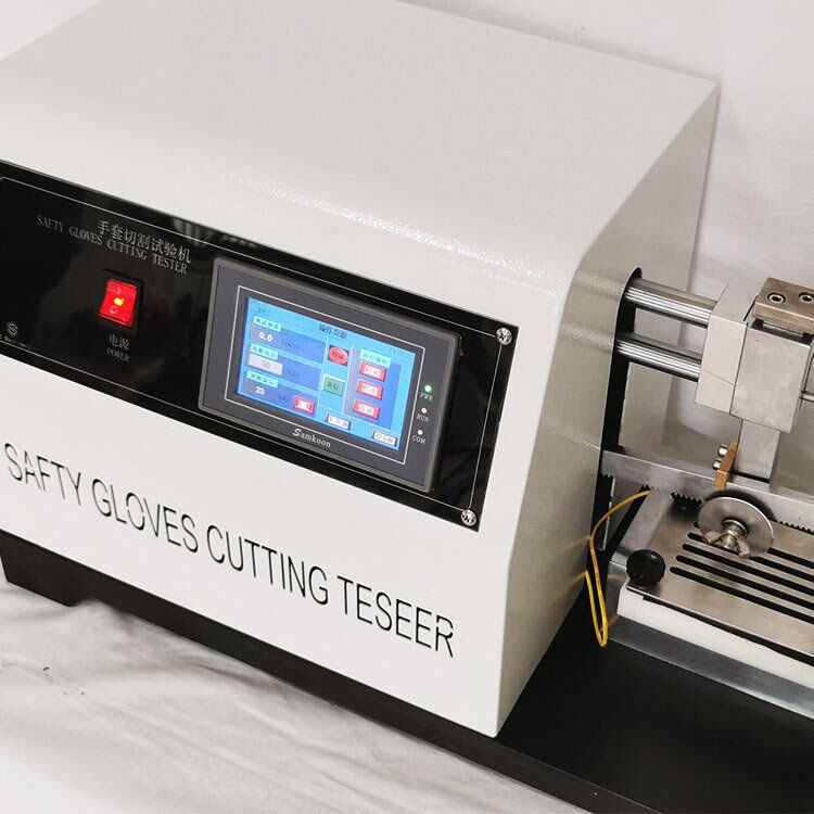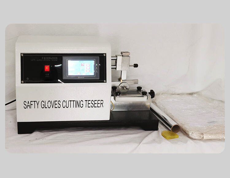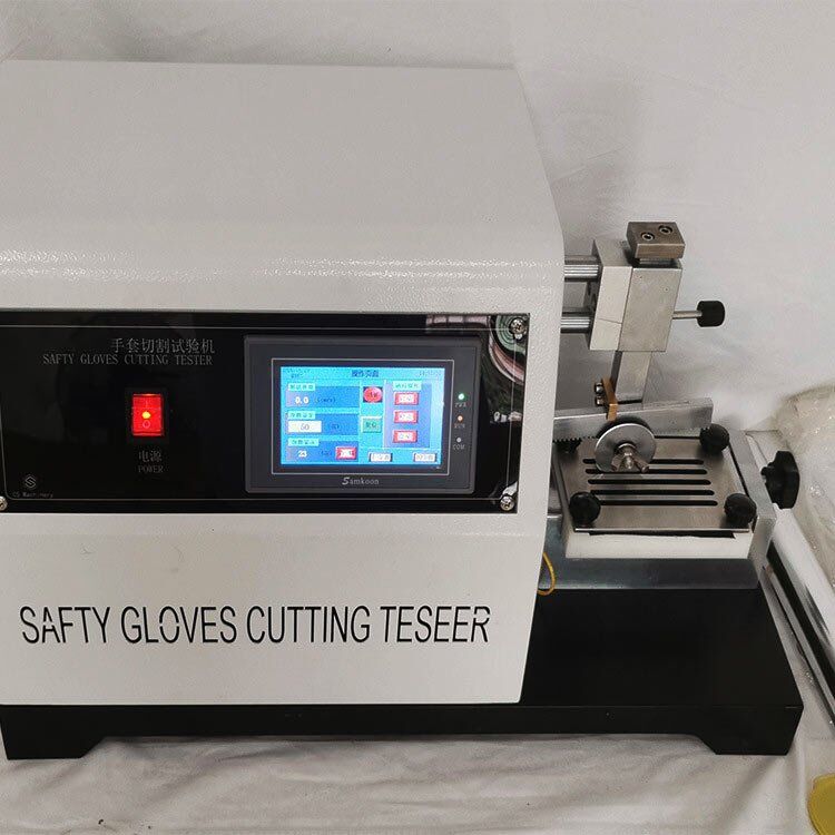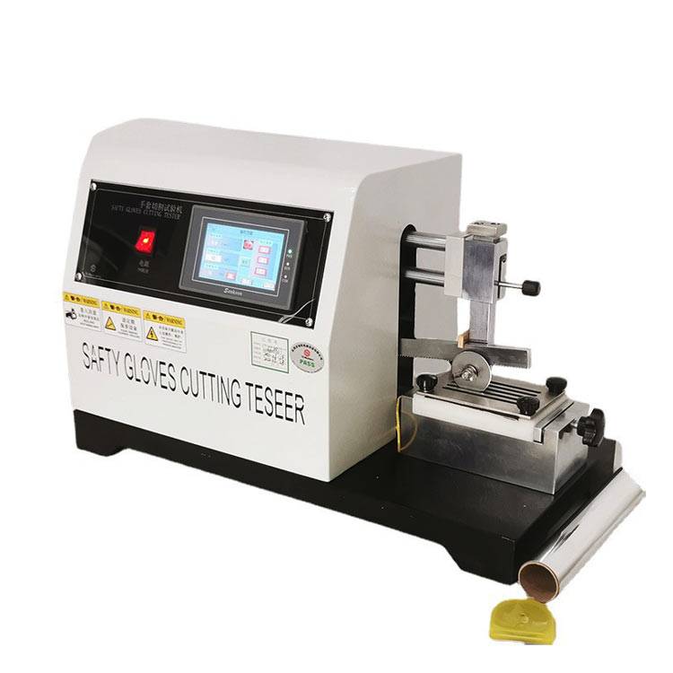 Safety Glove Cut Resistance Tester is used to determine the protective capability of the safety glove against cutting. A driving rotation round blade under a specified load cuts the glove held by the fixture of tester to and fro. After test, compare it with its original statuses to get the results.