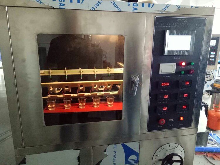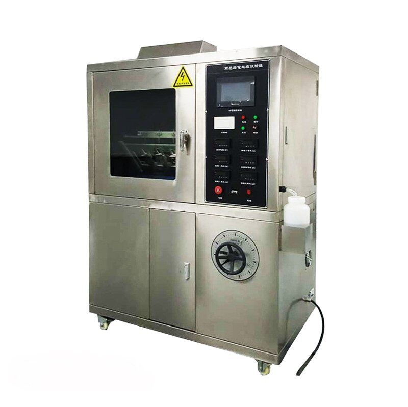 High Voltage tracking tester suit for electronic products, household appliances and other materials resistance to tracking and erosion test, simulate the frequency (48HZ-62HZ) or a corresponding DC Voltage, liquid contaminants and ramps samples by electrical resistance to tracking and erosion measurements assessed under severe environmental conditions of electrical insulating materials resistance to tracking and erosion levels.