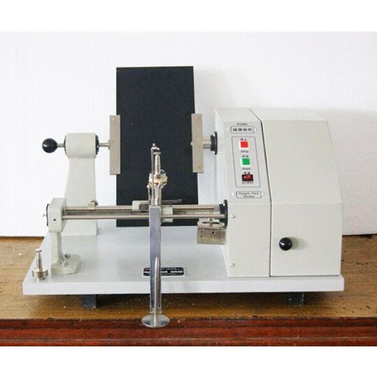 This machine is used to assess the evenness, hairiness, neps and other imperfections in a representative sample of various yarn wound at a pre-determined yarn density onto a quadrate/tapered black or white board.